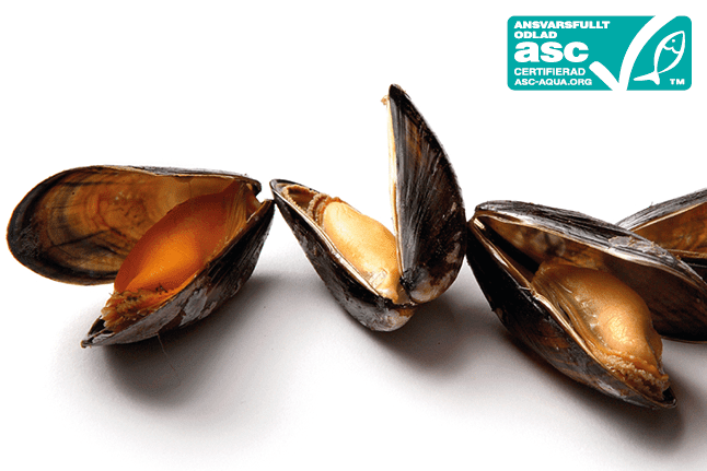 Blåmusslorna är ASC-märkta (Aquaculture Stewardship Council), vilket innebär att de odlats på ett hållbart sätt med full spårbarhet och respekt för havsmiljön.