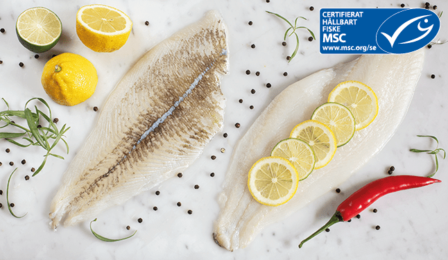 Kungsflundra – MSC är en elegant och eftertraktad vitfisk med fast, vitt kött och en mild, smörig smak.