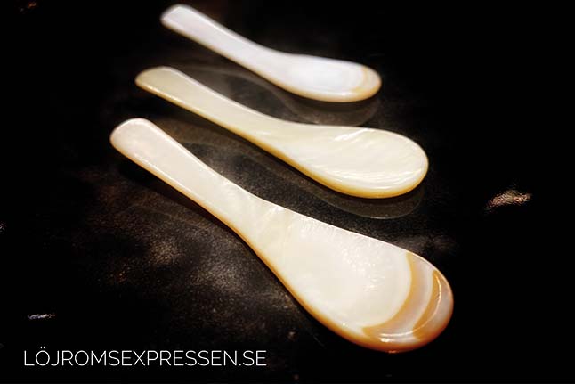 Pärlemorsked för kaviar och löjrom - kanske den viktigaste detaljen för att få till den riktigt lyxiga känslan när man serverar löjrom. En lyxig sked av pärlemor är inte bara "pricken över i:et" när det vankas lyx - den garanterar även att din löjrom inte tar smak av din sked. Kaviar och löjrom tar lätt smak av metall- silverbestick därför är det en klar fördel att använda en sked av Pärlemor när du ska servera din löjrom.