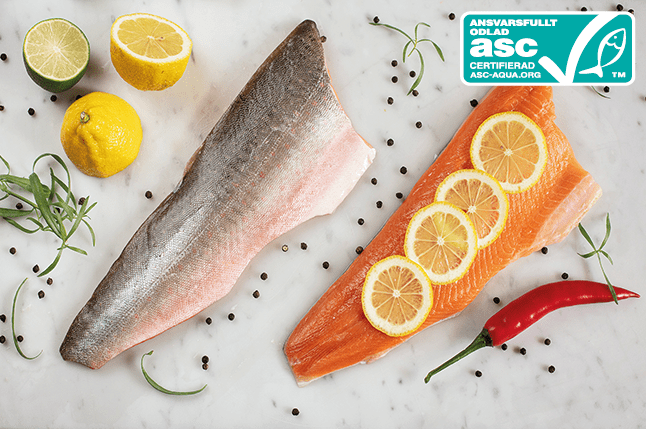 Genom ASC-certifieringen säkerställs att odlingen sker med hänsyn till miljö, vattenkvalitet och biologisk mångfald – samt att fodret är hållbart framtaget.
