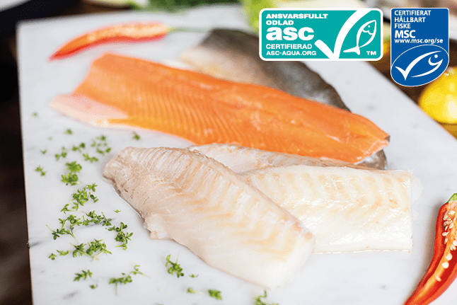 Innehåll: MSC-märkt torskrygg & ASC-certifierad röding