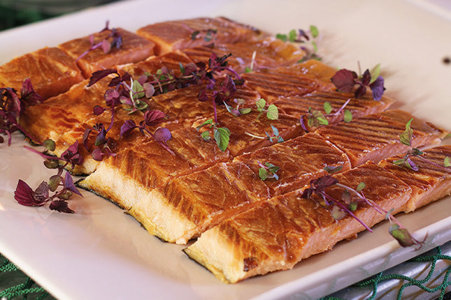 Vår varmrökta laxfilé röks i små satser, där temperaturen och tiden övervakas noggrant för att bevara saftighet, smak och näringsämnen.